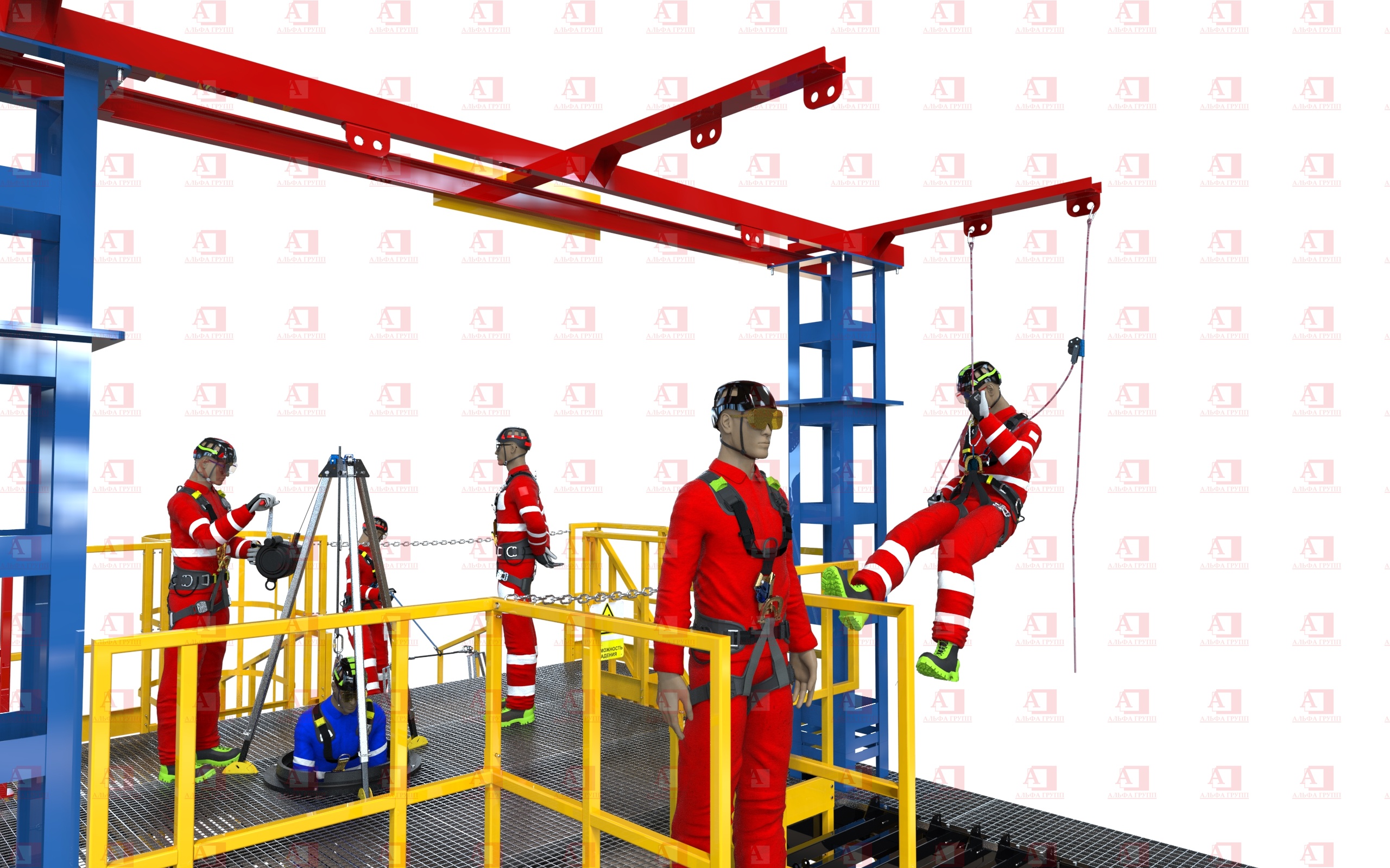 Для защиты от риска падения комплекс оснащен перилами и защитным ограждением высотой не менее 1100 мм.