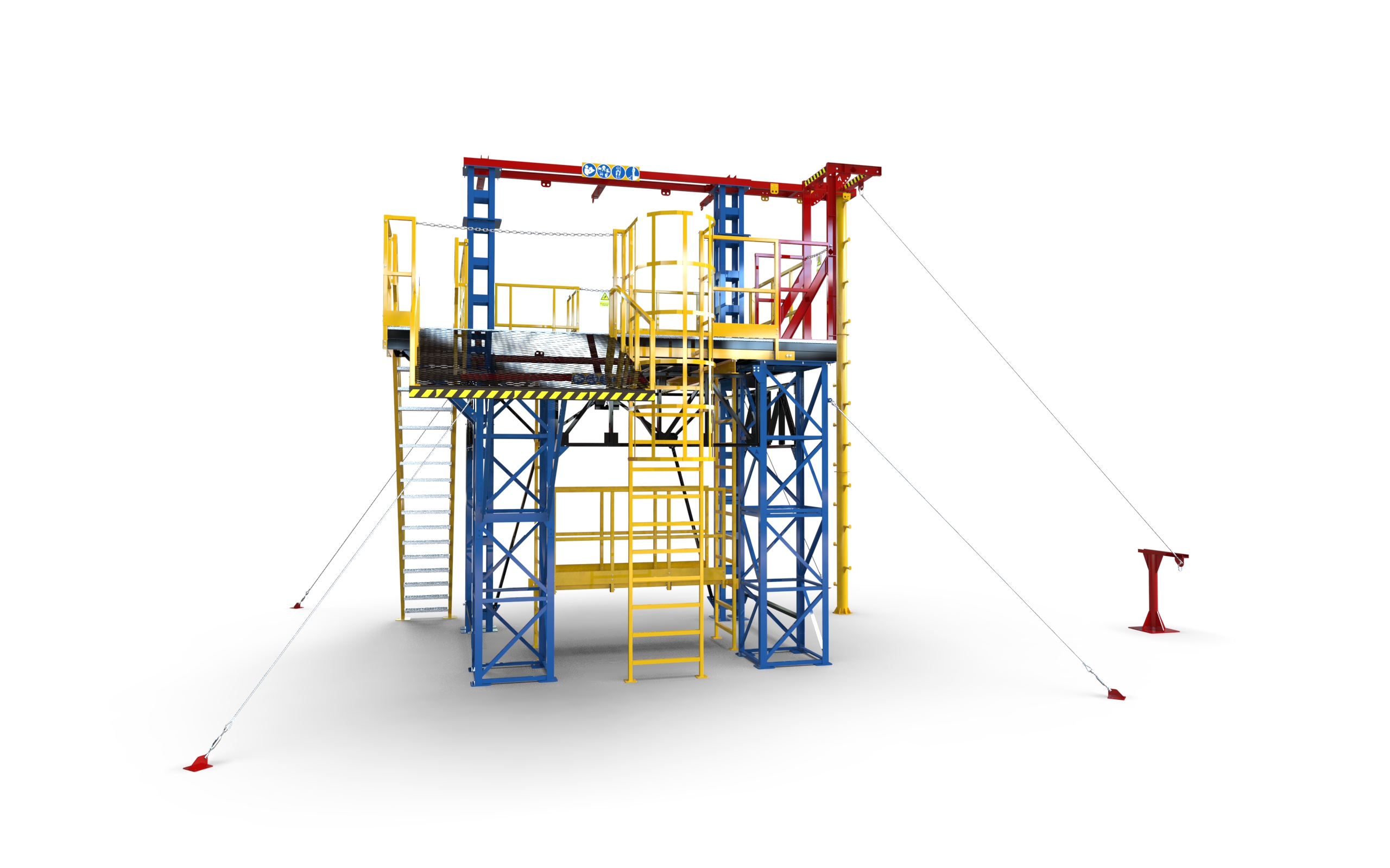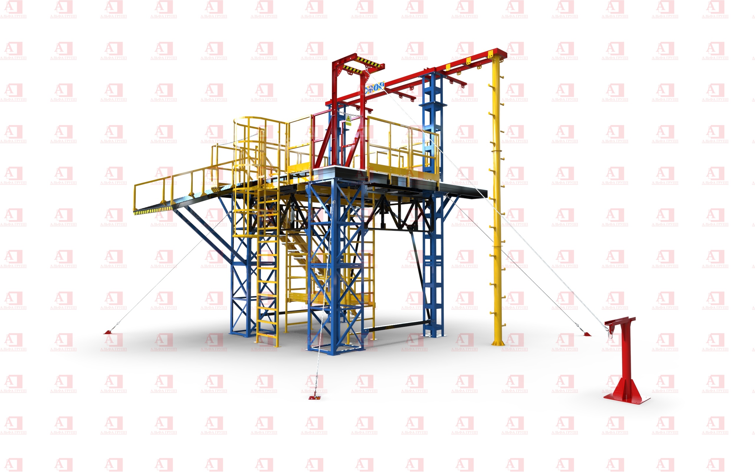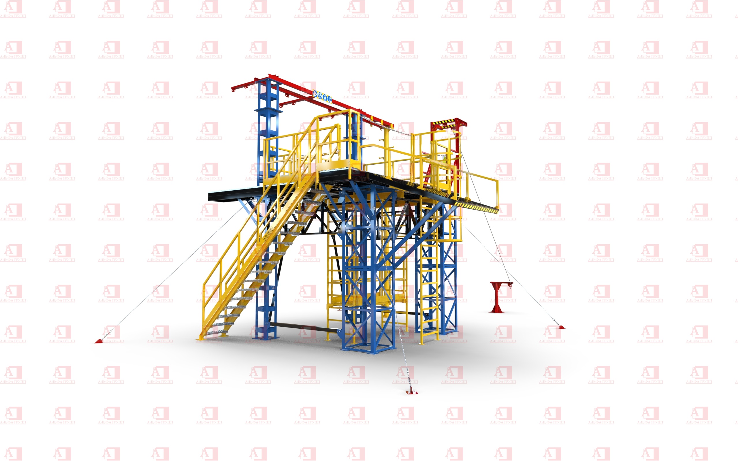 Конструктив уровней надежно крепится болтовыми соединениями к узлам и опорам полигона.